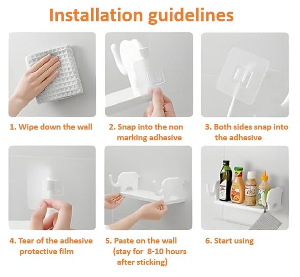 The strong adhesive mounting system allows easy installation without drilling or damaging your walls. It is perfect for storing spice bottles, sauce bottles, toiletries, jars, and small household items while keeping your countertop clean and clutter‑free.